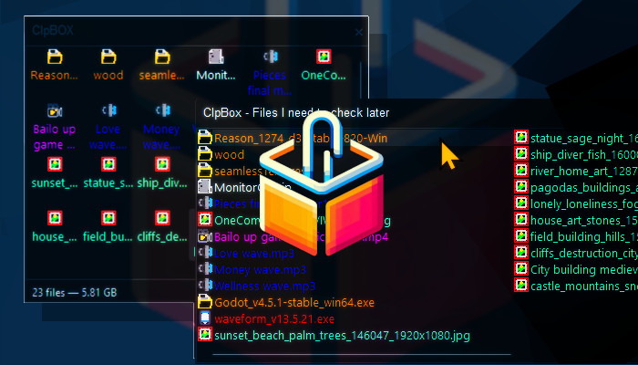 ClpBox is a lightweight, fast, and beautifully minimal file utility designed to make your daily workflow smoother. Drag files in, organize them visually, preview them instantly, and drop them wherever, whenever you need — all without clutter, noise, or friction.