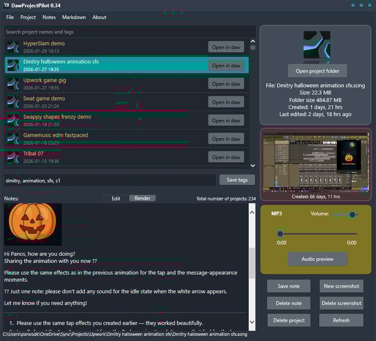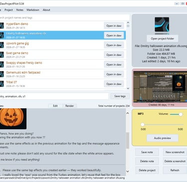 Originally built to streamline everyday workflow tasks for music production, DawProjectPilot now includes versioning, notes, screenshots, audio preview, and more.